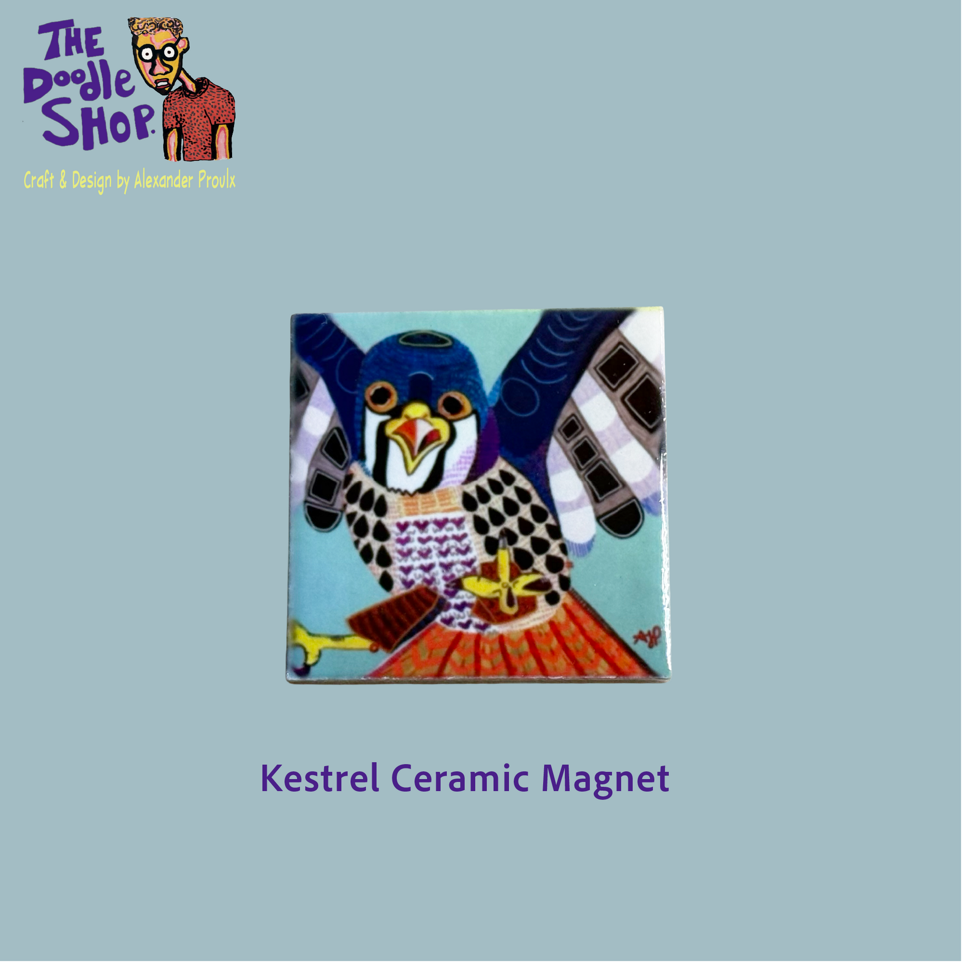 1.75 in ceramic tile with magnet featuring art by Alexander Proulx